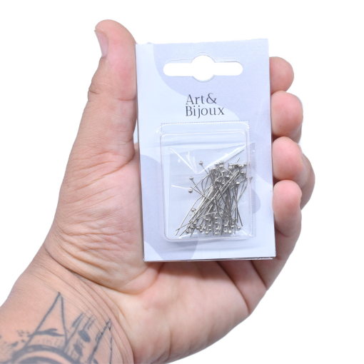 Alfinete de Latão Bolinha Níquel 30mm